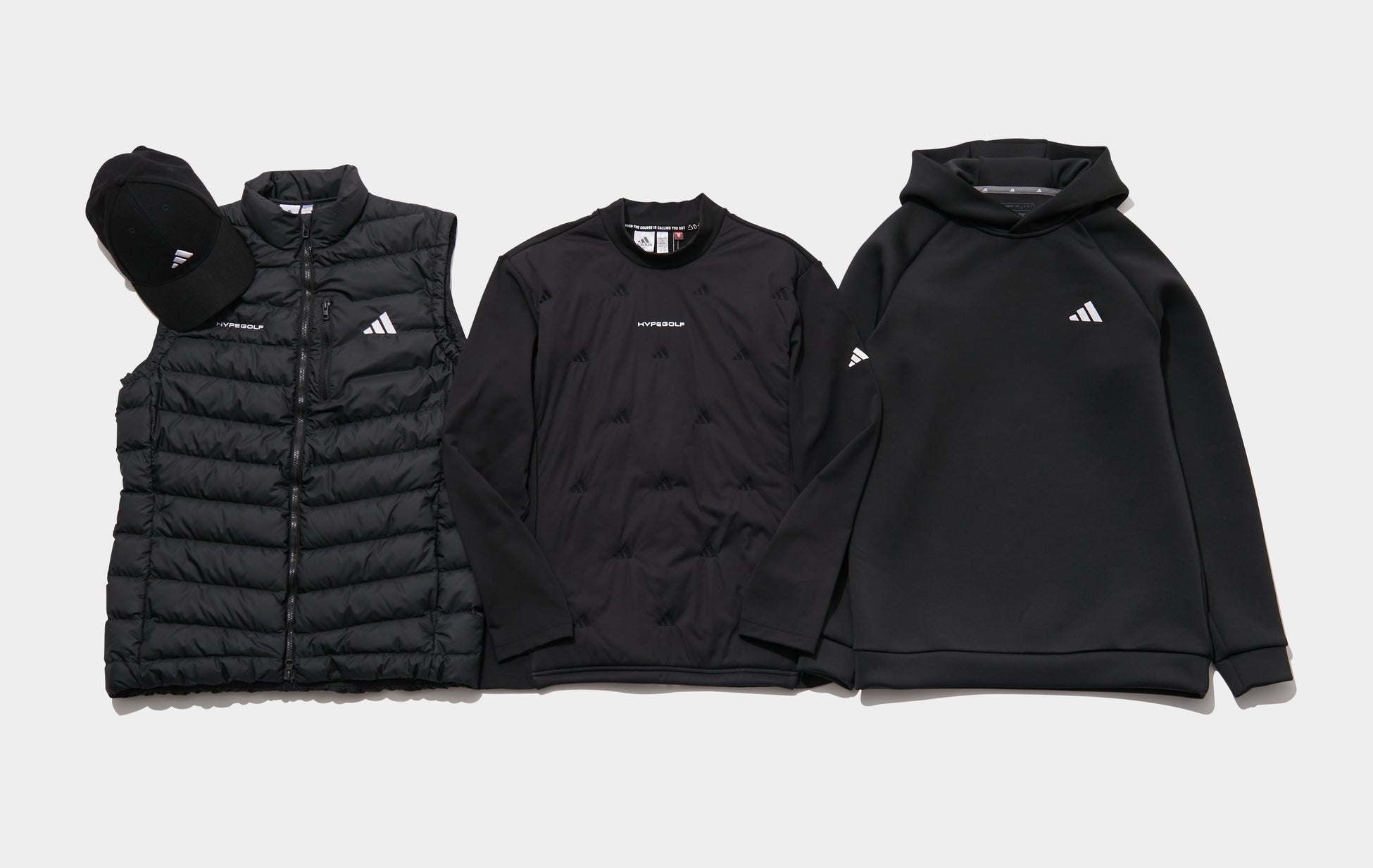 adidas Golfとの第二弾のリースとして、今回は秋冬のラウンドで使えるアイテムRipstop full-zip down waistcoat・ Double knit pullover hoodie・Frost Guard mock-neck shirt・Logo tweed capの4型をセレクト。