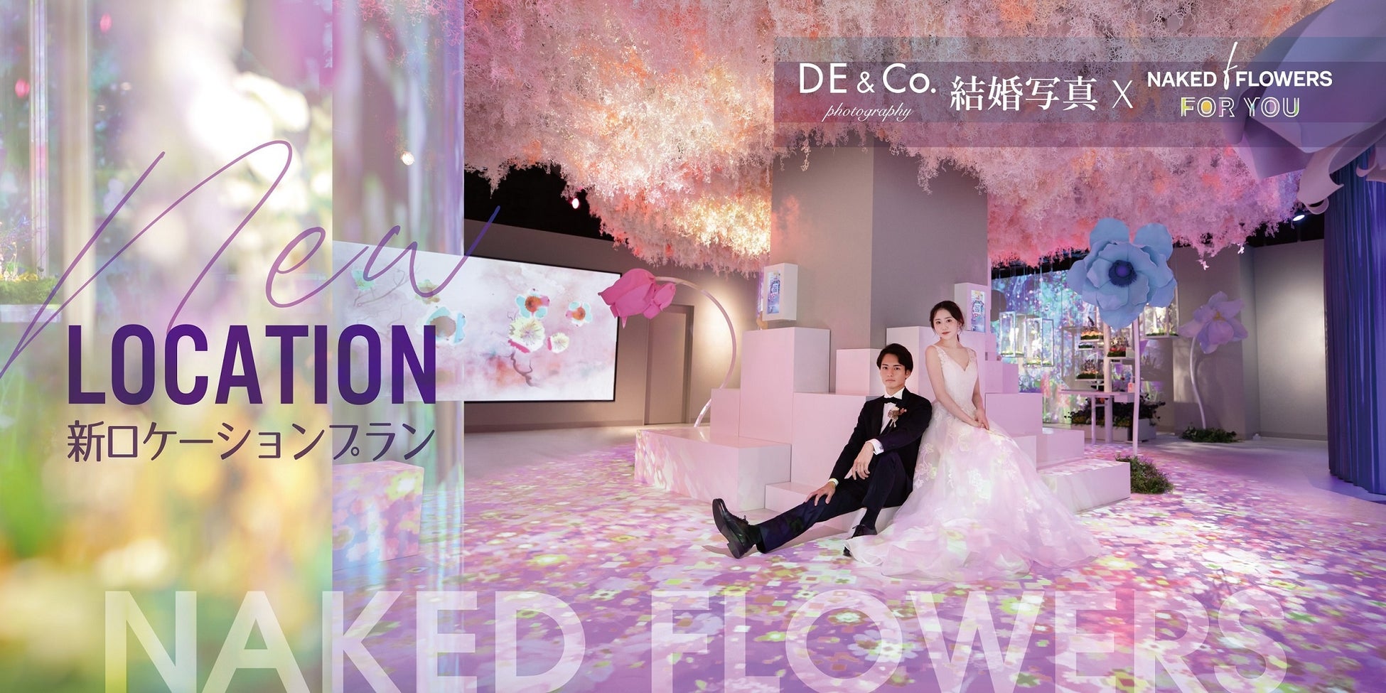 NAKED FLOWERS FOR YOU製作委員会は、国内初常設のパーソナライズされたオリジナル体験を提供する進化系フラワーアート施設『NAKED FLOWERS FOR YOU(ネイキッド フラワーズ フォー ユー)』にて、ウェディングフォトスタジオを全国展開する株式会社デコルテとの初めてのタイアップにより、営業時間外の施設を活用して結婚写真の撮影が行える新プラン『NAKED FLOWERSロケーション』を本日よりスタートします。