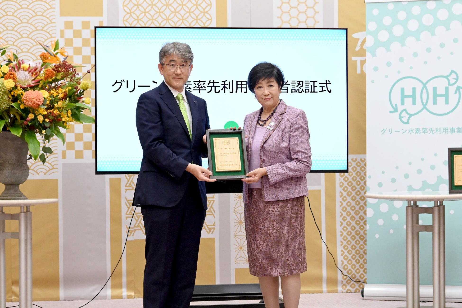 ブラザー工業株式会社は、同社東京支社(東京都中央区)において、東京都によるグリーン水素*1の活用促進を目的とした「グリーン水素率先利用事業者認証制度」のうち、「少量利用型」区分の認証を取得した。10月14日には東京都庁にて認証式が行われ、小池百合子東京都知事から認証盾が授与された。