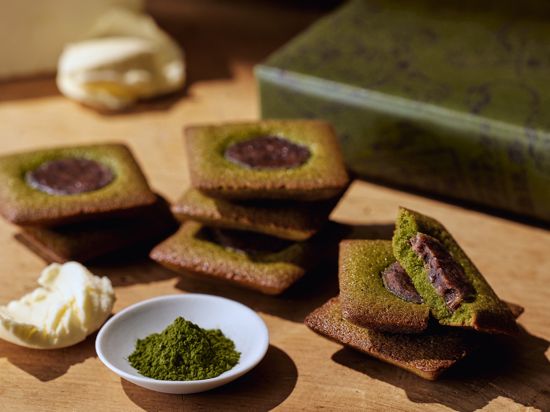 碾茶を忍ばせより薫りの立った抹茶と、丁寧に焦がしたバターが染み入ったフィナンシェ生地で、北海道産『えりも小豆』餡子を包み込んだ。