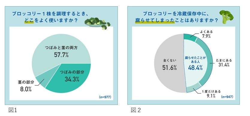 世界的に「フードロス削減」の風潮が高まりつつある昨今、日本でも様々な取り組みが始まっています。当社の実施した調査では、家庭内の食品廃棄で特に多いのが生鮮野菜(※2)です。3社は生鮮野菜の廃棄を減らすためには、適切な保存方法と手軽な使い方を広めていくことが大切だと考えており、各々の製品の強みを活かして提案できる「野菜を賢く冷凍することによるフードロス削減」の取り組みを昨年から開始しています。本年は、10月~3月に旬を迎え(※1)、茎の部分が廃棄されやすいブロッコリーに着目し、ブロッコリーをまるごと使い切るための保存方法や食べ方について情報発信してまいります。