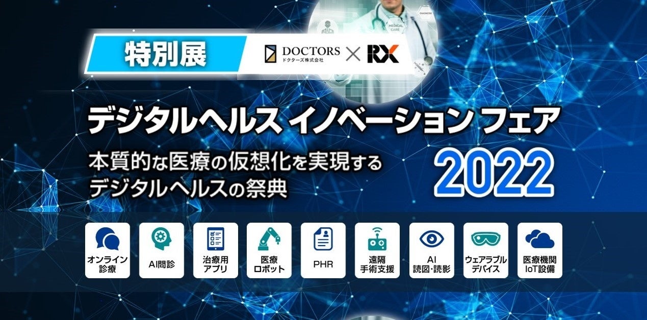 RX Japan株式会社(本社:東京都新宿区、代表取締役社長:田中 岳志、以下「RX Japan」)とドクターズ株式会社(本社:東京都港区、代表取締役社長 兼 CEO:柳川 貴雄、以下「ドクターズ」)は、2022年10月12日(水)〜2022年10月14日(金)に幕張メッセで開催される「メディカルジャパン」にて、特別展「デジタルヘルス イノベーション フェア 2022」を共催することが決定いたしました。