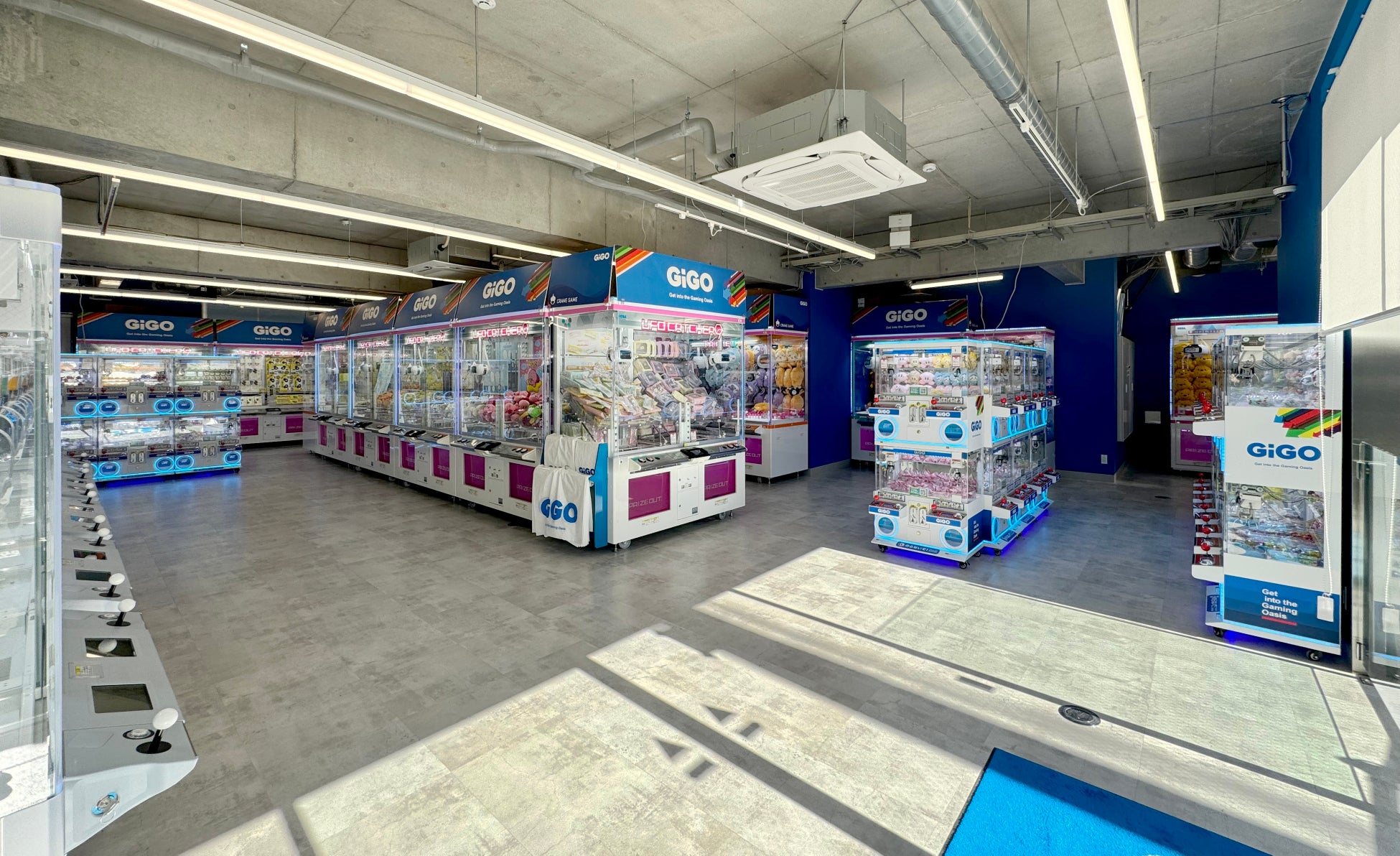 店内は2フロア構成で、1階はクレーンゲーム、2階に音楽ゲームやビデオ大型カードゲーム、キッズカードゲームなどを備えています。また、毎週のようにGiGO限定景品が登場予定で、各種イベントも開催いたします。