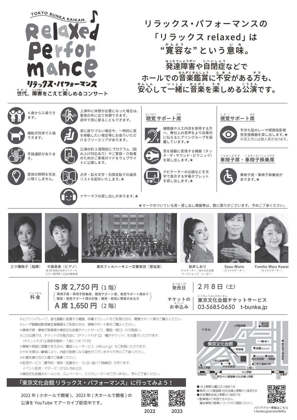 東京文化会館 リラックス・パフォーマンス~世代、障害をこえて楽しめるコンサート~(2023年11月26日動画)