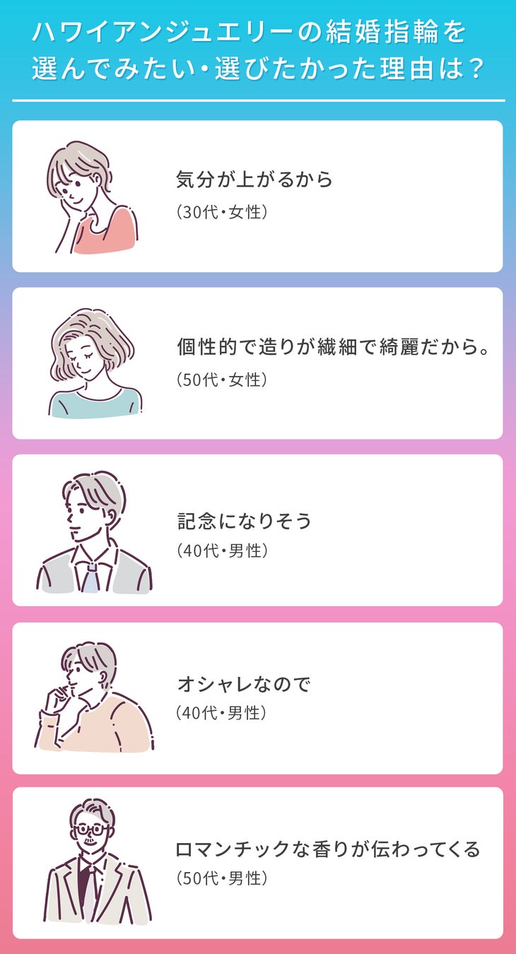 続いて、「ハワイアンジュエリー」の結婚指輪があることを知っているか聞いてみました。