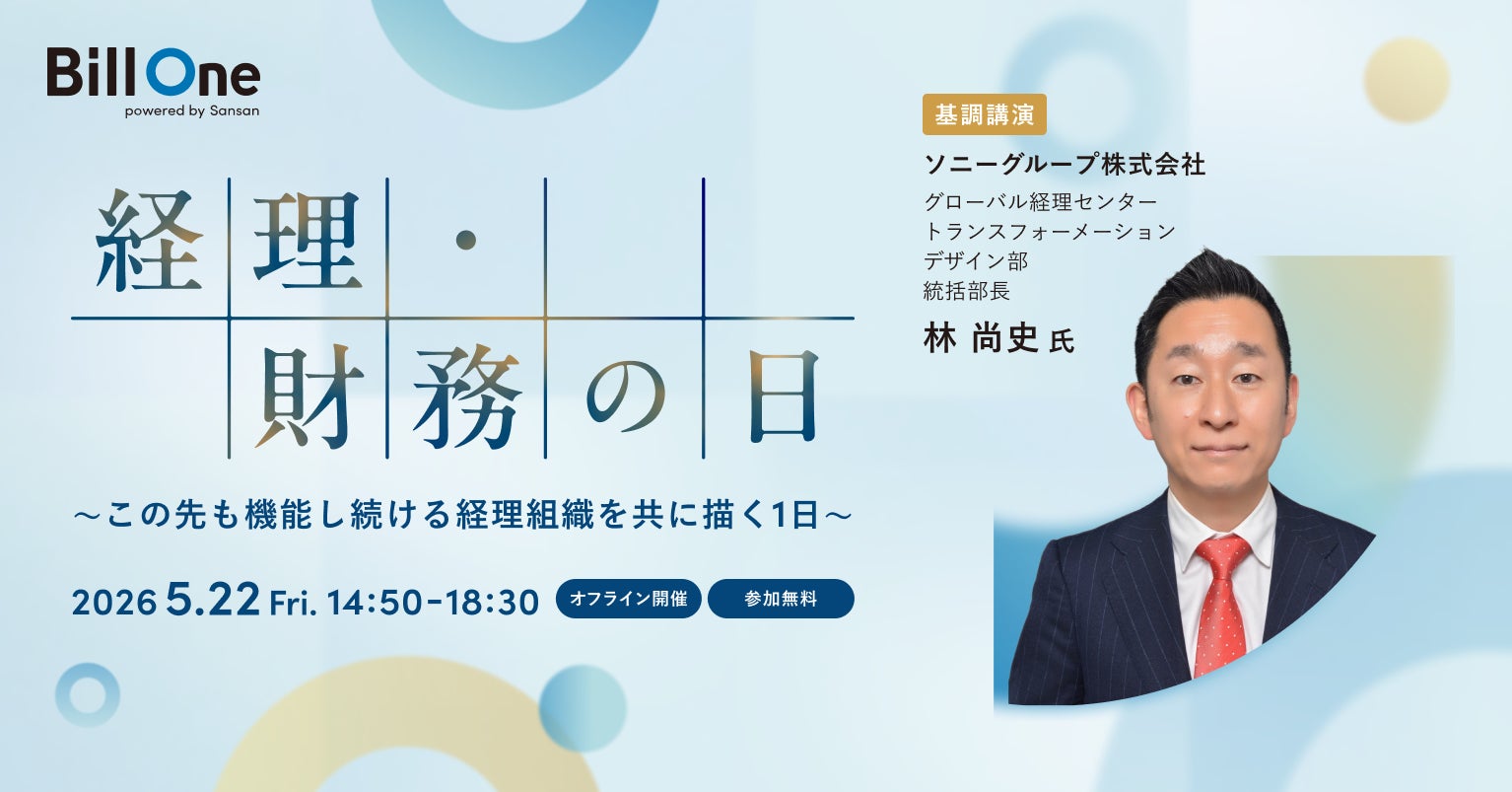 Sansan株式会社が提供する経理AXサービス「Bill One」は、ビジネスイベント「経理・財務の日~この先も機能し続ける経理組織を共に描く1日~」を、2026年5月22日(金)14:50より室町三井ホール&カンファレンスにて開催いたします。