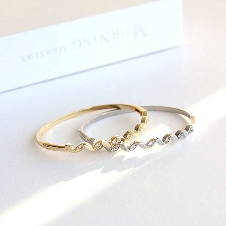 商品名:リーフラインバングル / キュービックジルコニア / 開閉式