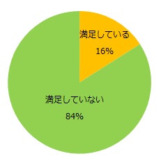 現在アルバイトとして就業する方に、「現在の収入の満足度について教えてください」と伺うと、84%が「満足していない」と回答しました。
