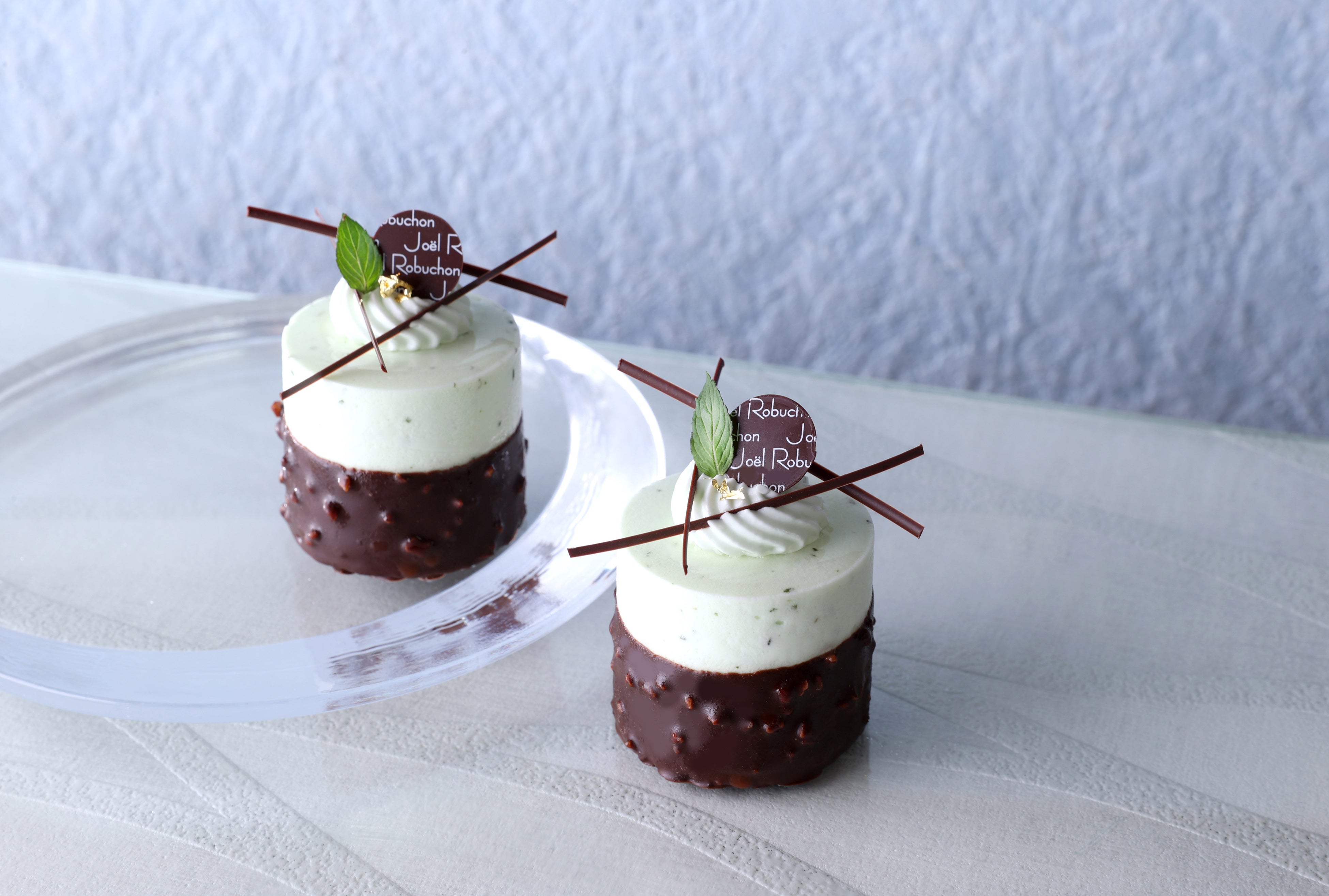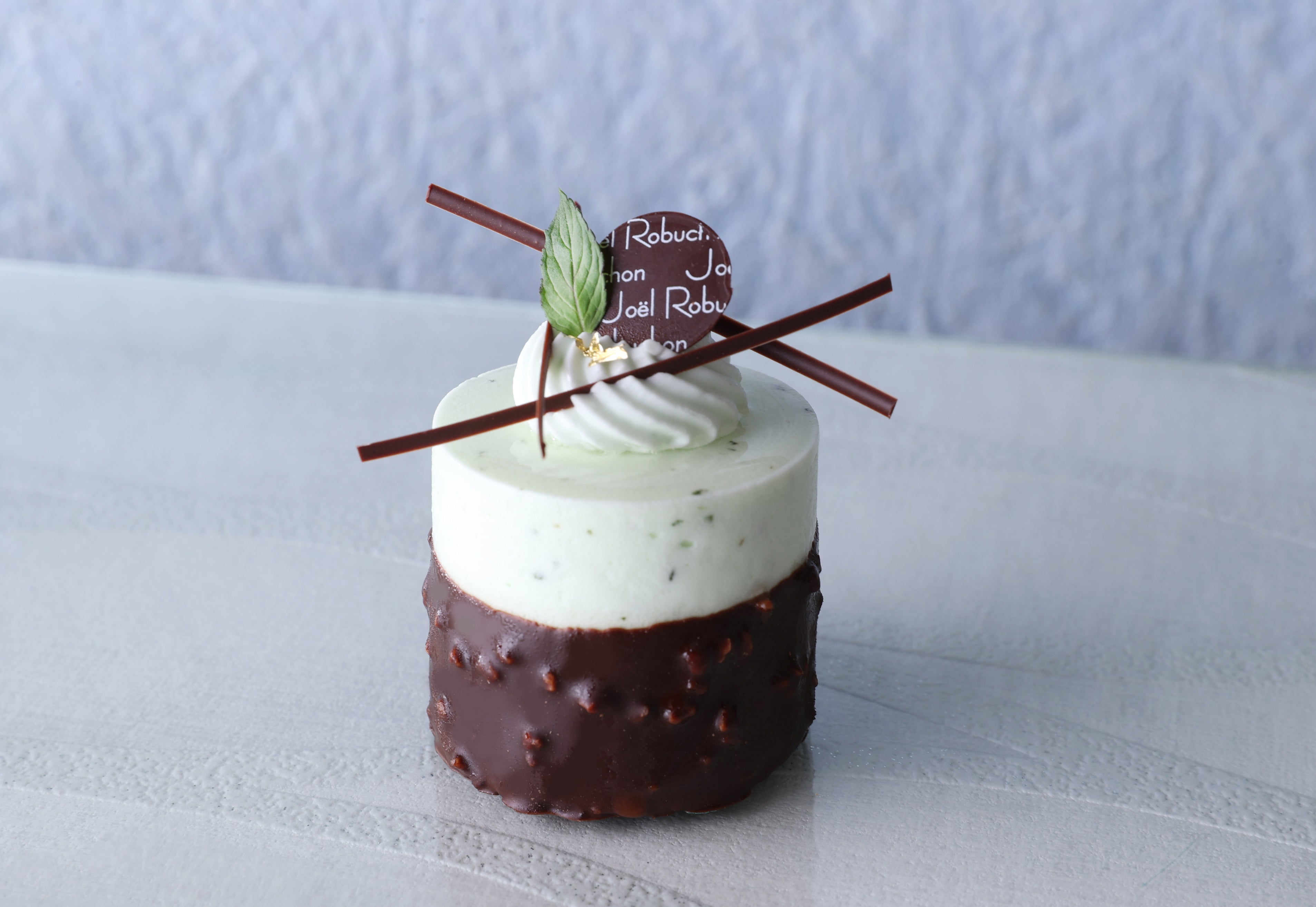 日本とフランスでパティスリーやショコラティエとしての豊富な経験を持ち、ショコラを得意とするシェフパティシエ 大塚が手掛けた新作です。爽やかな香りのフレッシュミントを使った軽やかなムースに、深みのあるビターチョコレートクリームを忍ばせました。ビスキュイショコラやコーティングチョコレートの食感もお楽しみいただけます。ジョエル・ロブションから初めてお届けする、夏にぴったりの涼やかなチョコとミントのプチガトーをぜひご賞味ください。