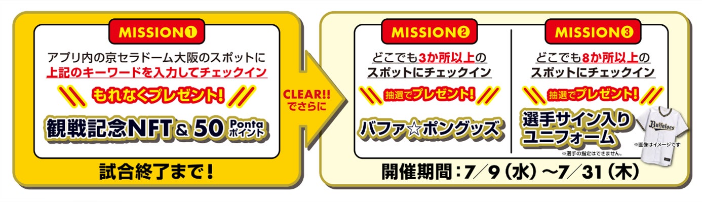 2025年7月9日(水)15:00~7月31日(木)23:59 ※MISSION①は2025年7月9日(水)15:00~試合終了です |