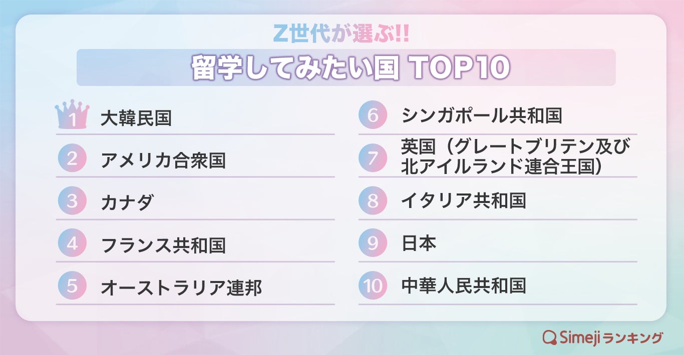 【Simejiランキング】Z世代が選ぶ!!「留学してみたい国TOP10」
