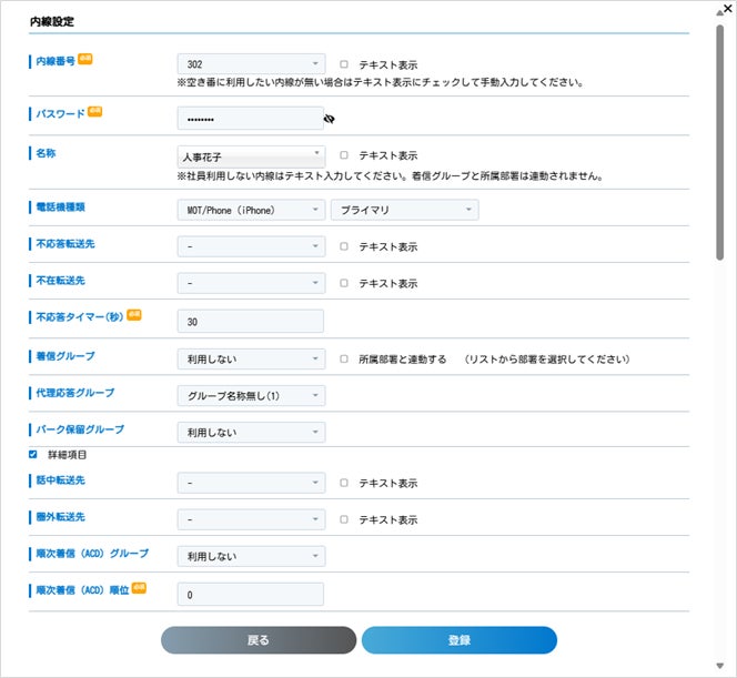従来、弊社のサポートセンターへ依頼いただき、弊社が設定を行っていましたが本機能追加に伴いお客様自身で組織変更や人事異動、新入社員の入社といった場面で、柔軟かつ迅速に内線設定を行うことが可能となります。