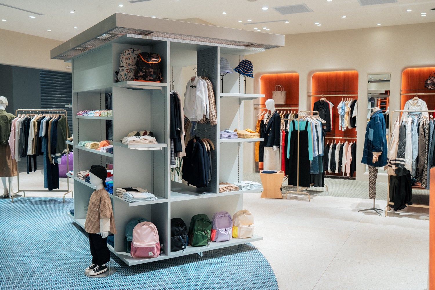 取り扱いのレーベルはメンズ、ウィメンズ、キッズなど広範囲のアイテムを展開する〈B:MING by BEAMS〉と、メンズカジュアルの〈BEAMS〉、ウィメンズカジュアルの〈Ray BEAMS〉〈BEAMS BOY〉に加え、キッズアイテムの〈こども ビームス〉〈BEAMS mini〉、雑貨を展開する〈bPr BEAMS〉です。なお、メンズのレーベルでは、出店エリアのビジネス客ニーズに対応できるカジュアルウエアも一部展開します。