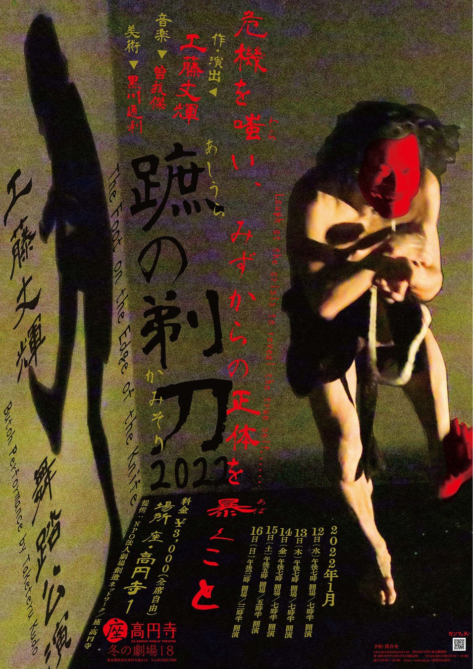 東京戯園館主催による、工藤丈輝舞踏公演『蹠の剃刀(あしうらのかみそり)』が2022年1月12日 (水) ~2022年1月16日 (日)に座・高円寺1(東京都杉並区)にて上演されます。チケットはカンフェティ(運営:ロングランプランニング株式会社、東京都新宿区、代表取締役:榑松 大剛)にて12月27日(月)より発売開始です。