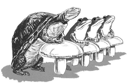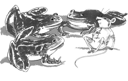 家族をさがして森に迷いこんだウォルターは、池のカエルたちやカメと仲良くなります。