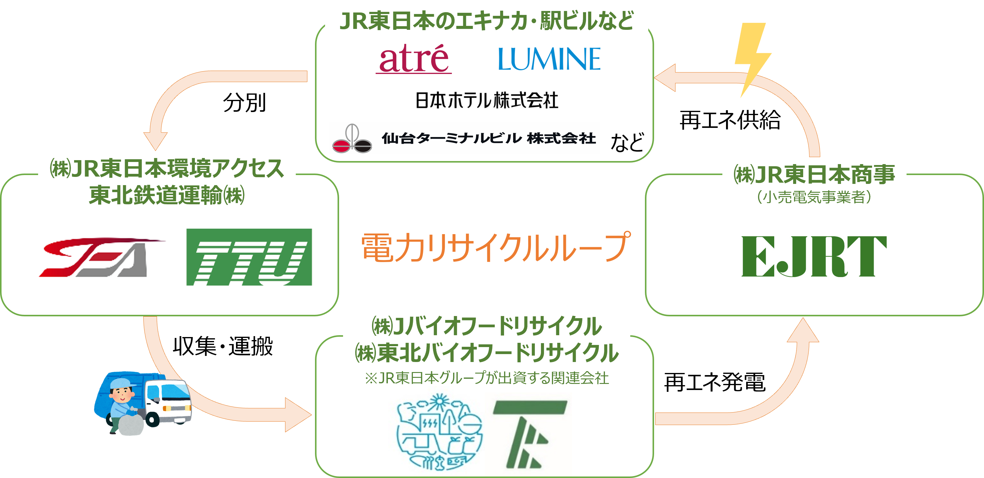JR東日本グループによる食品廃棄物の『電力リサイクルループ』推進~分別から再エネ活用までグループ全体で連携して取り組みます~