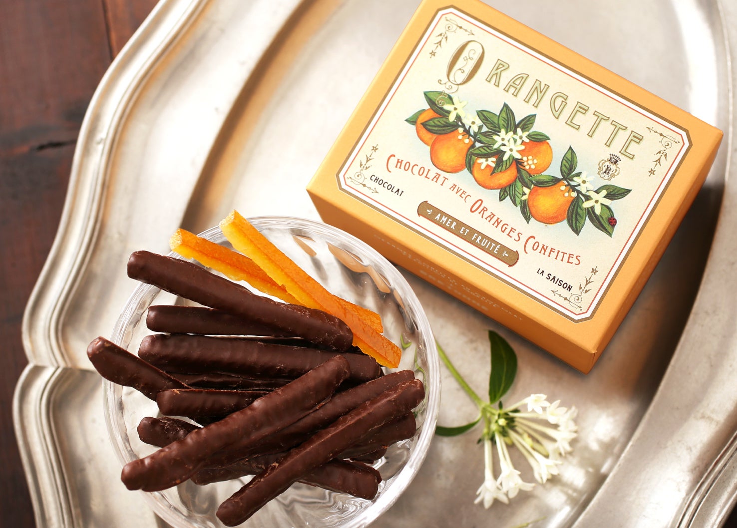 フルーティなオレンジピールに、ほろ苦いベルギー産スイートチョコレートをコーティングした期間限定のショコラのプティギフト。