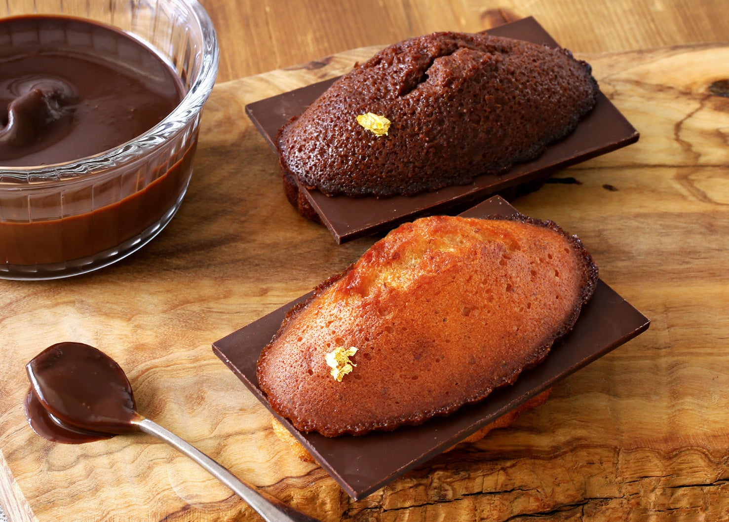 ブルトンヌで一番人気のフィナンシェに、ビターで香り高いベルギー産のクーベルチュールチョコレートの板チョコをはさんだ、特別な一品。バターの風味豊かなフィナンシェにタブレットショコラのぱりっとした食感がアクセントです。〈プレーン〉と〈ショコラ〉の 2 種を、各日 各店 50 個限定で販売します。