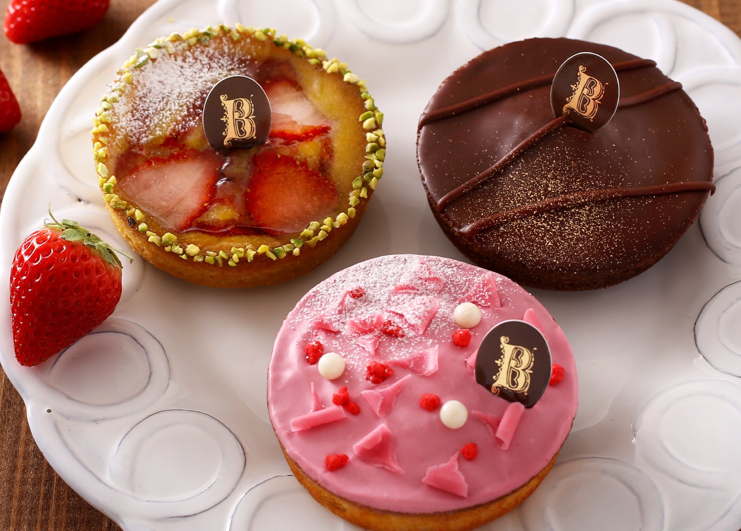 バレンタインシーズンに合わせて華やかに仕上げた 3 つの限定のガトー・ナンテが登場。発酵バターの風味豊かな生地と、ショコラやベリーなどの素材が引き立て合う美味しさです。