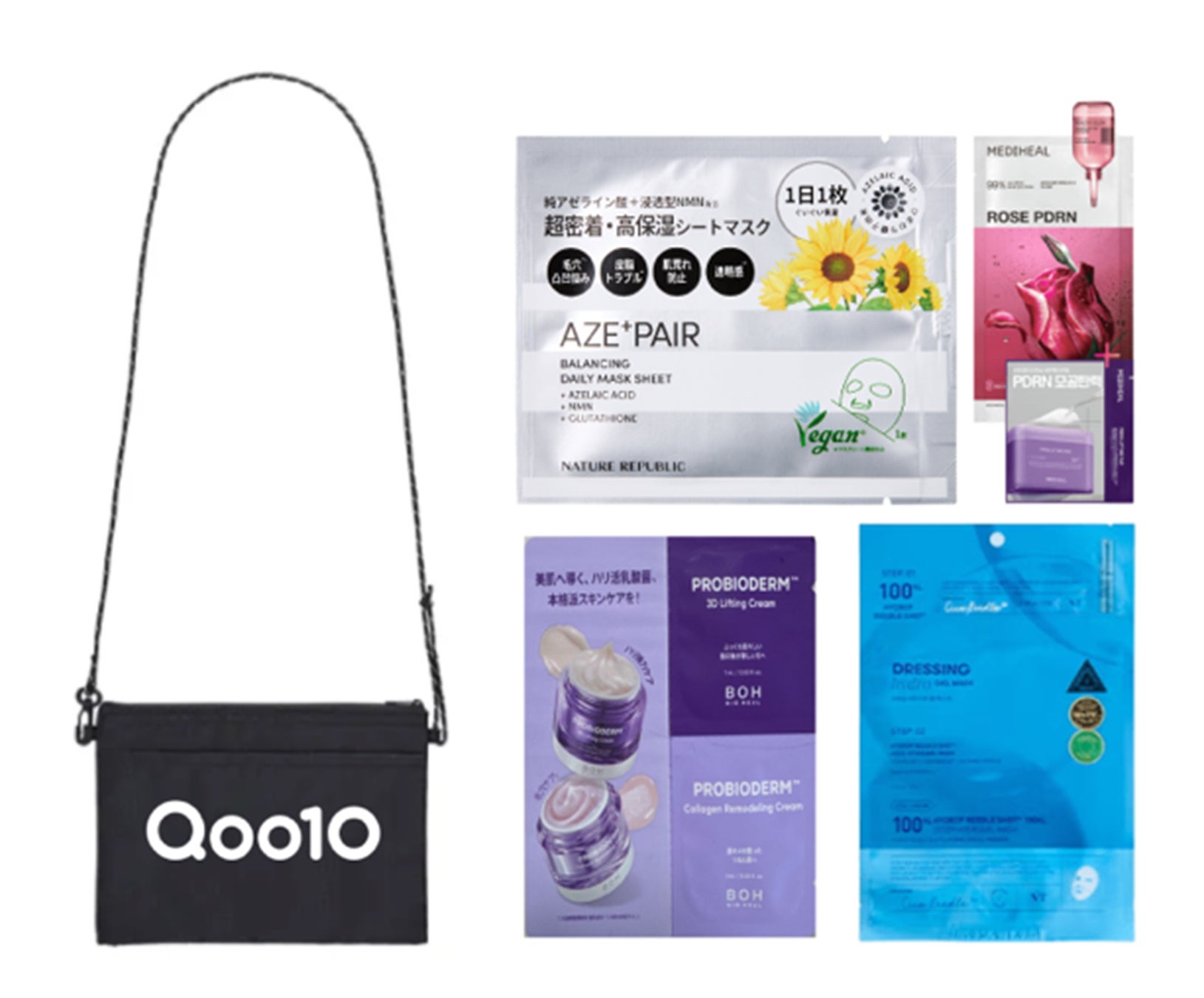 人気コスメサンプルとQoo10ロゴ入りオリジナルサコッシュをセットで、各日3,000個 合計6,000個をプレゼントします。