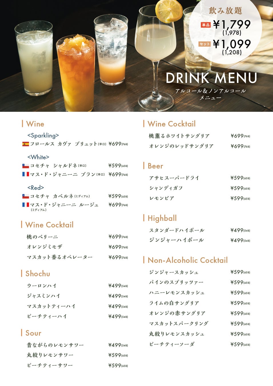 ディナー限定 アラカルトでもセットでも楽しめる 全70種類の飲み放題プラン