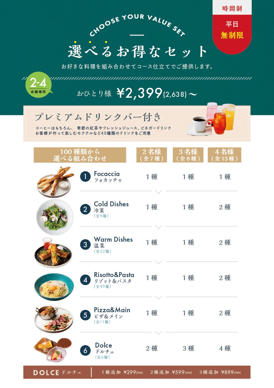 “本格イタリアン”もちろん人気の“エスニック料理”を含めた全100種類の圧倒的な品数