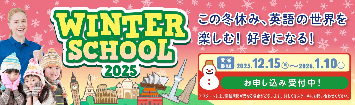 ・2025年12月15日(月)~2026年1月10日(土)までの期間限定開催 ・海外のクリスマスやニューイヤーイベントなどを学べるプログラムもご用意 ・英語環境で1日最大10時間過ごすプチ留学体験、冬休みのお子さまの預け先にも最適! |