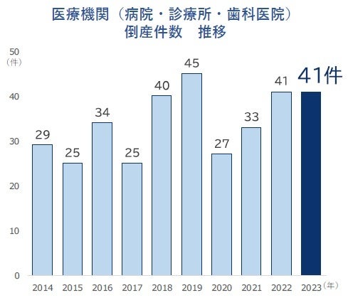 「医療機関」の倒産、2年連続で40件超え 今後は診療所の動向に注目 病院、歯科医院で大型倒産が発生、負債総額は過去10年で最大に