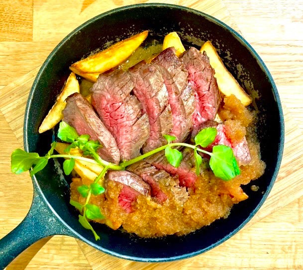 エロイーズカフェオリジナルのアップルソースが決め手のステーキとなっております。