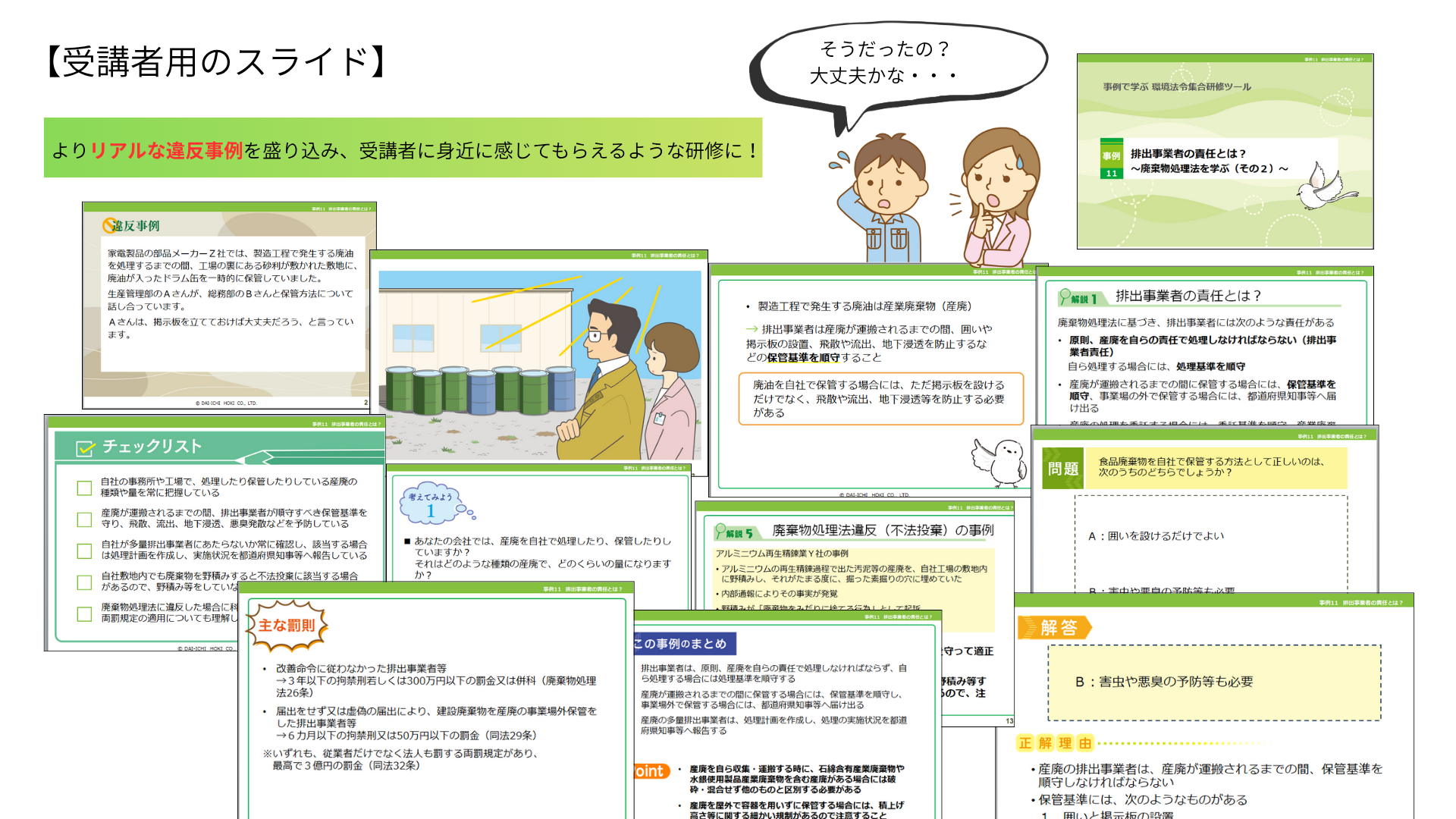 よりリアルな違反事例を盛り込み 環境法令の社内研修を身近に! 効果的に!