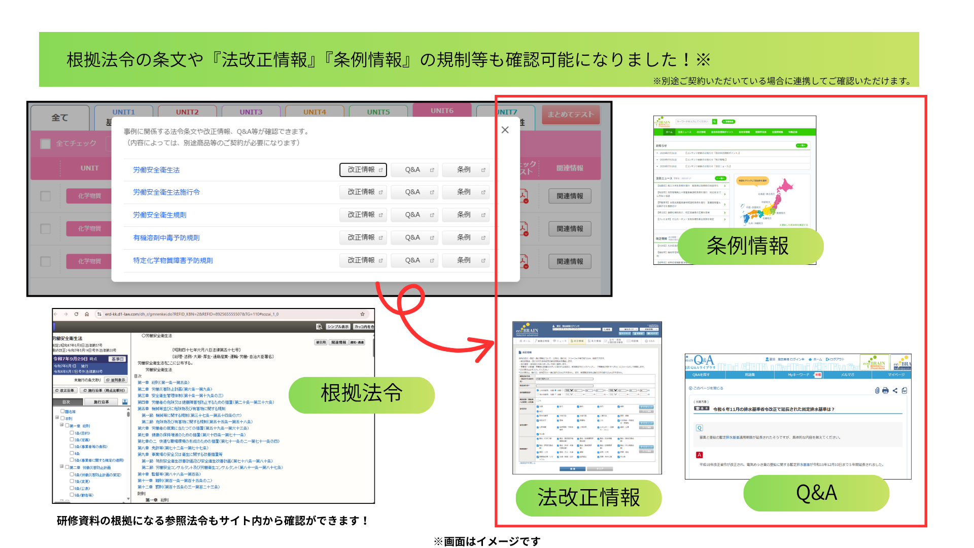 ◆研修に関連する法令情報、関連商品との連携で「法改正情報」や「条例情報」の規制も確認可能!事前準備が簡単になります。