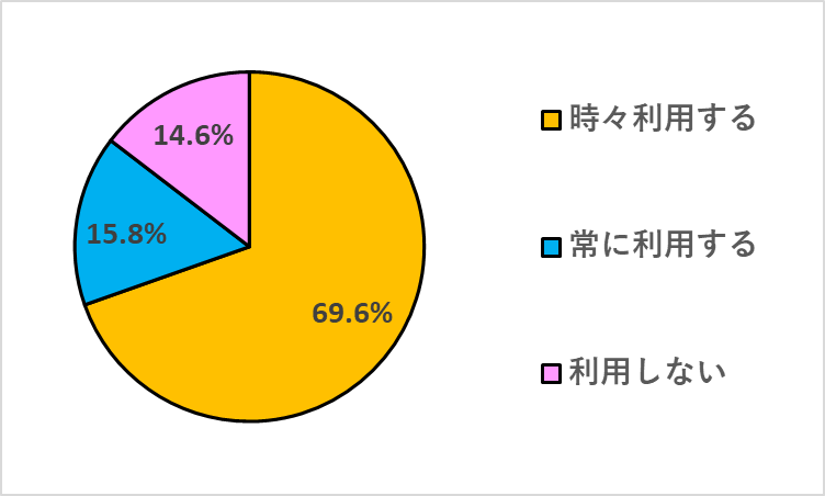 「レシートにクーポン券がついていたら利用しますか?」の質問に対し、「常に利用する」が15.8%、「時々利用する」が69.6%という結果になりました。