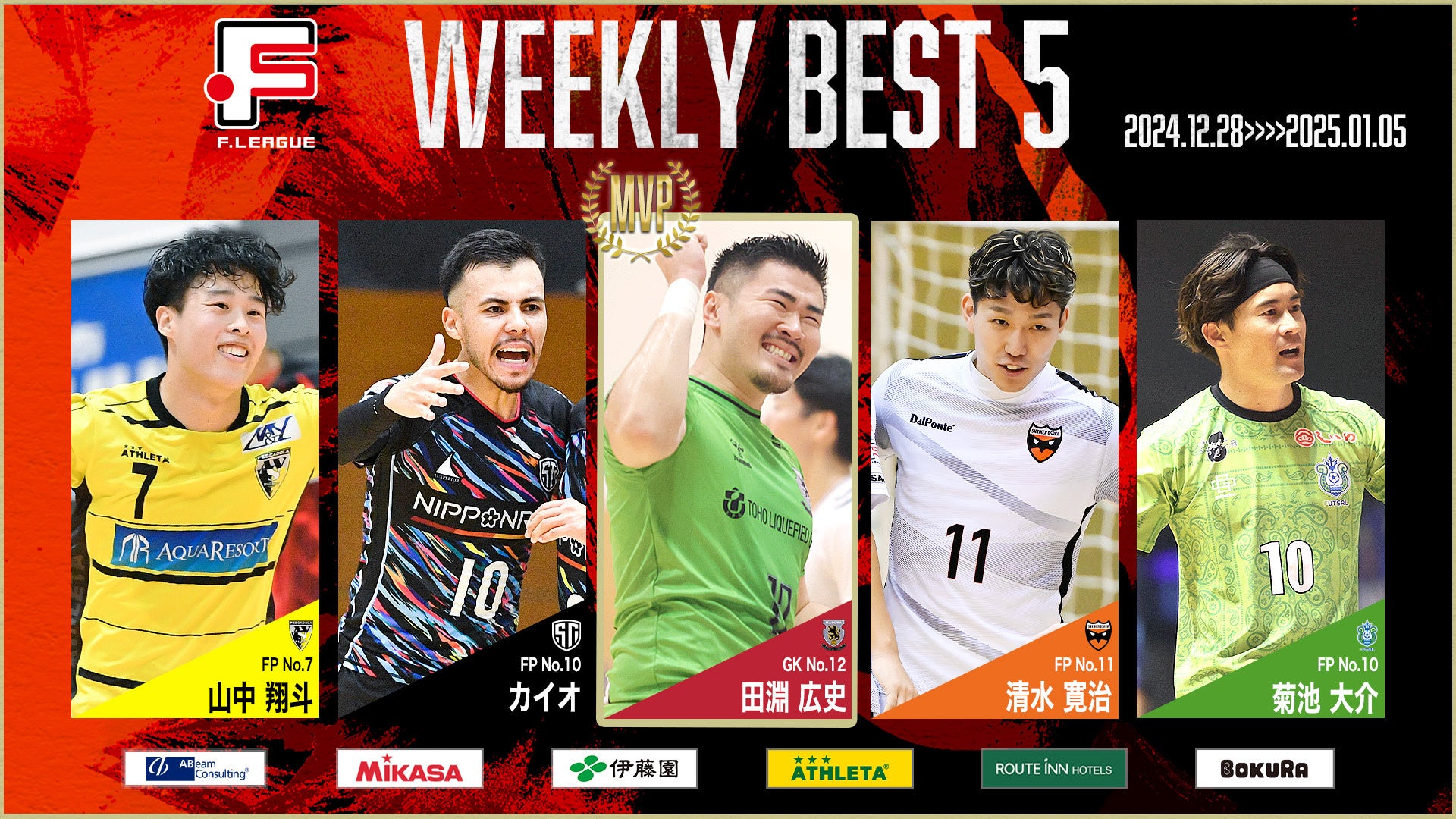 2024年12月28日(土)〜2025年1月5日(日)に実施したFリーグ2024-2025 ディビジョン1 第20節の週間ベスト5を発表いたします。