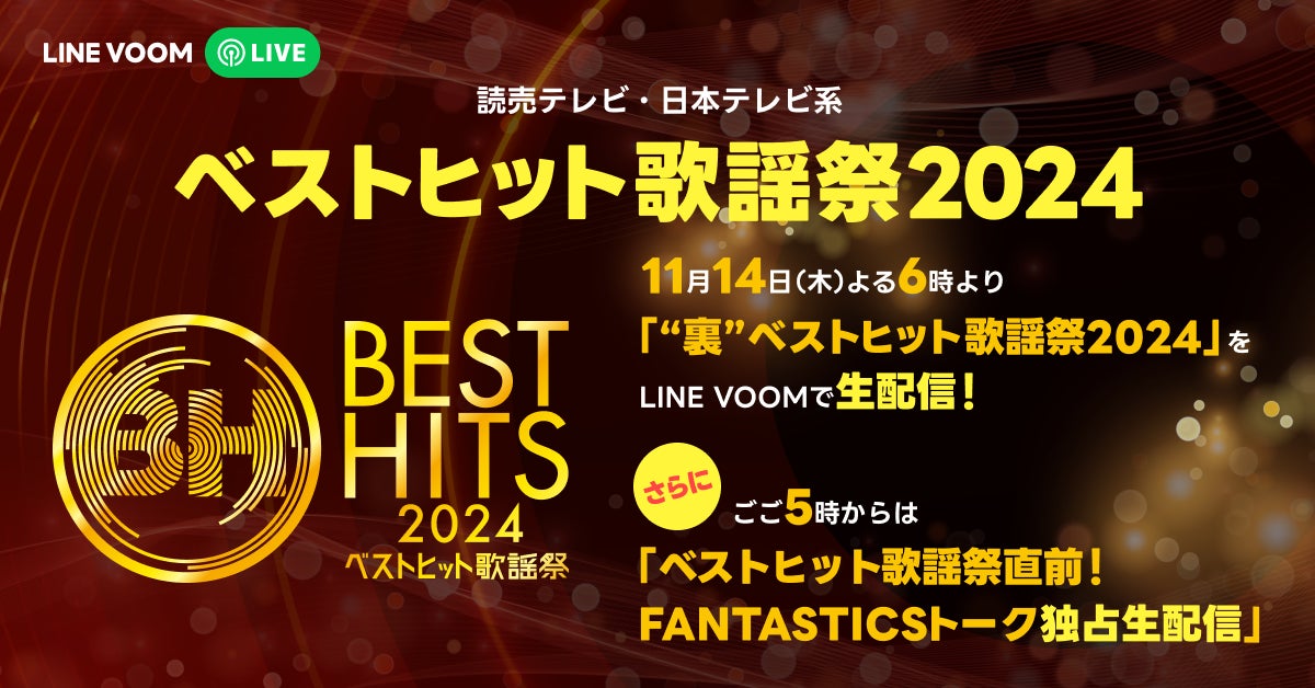 LINEヤフー株式会社は、「LINE」内のショート動画プラットフォーム「LINE VOOM」にて、『ベストヒット歌謡祭』放送直前に出演アーティストのFANTASTICSを招いた独占番組をライブ配信します。さらに、放送直前番組に出演したアーティストの披露楽曲を、音楽ストリーミングサービス「LINE MUSIC」(iPhone・Android対応)にて再生すると、限定画像が見られる番組連動企画も同時開催します。