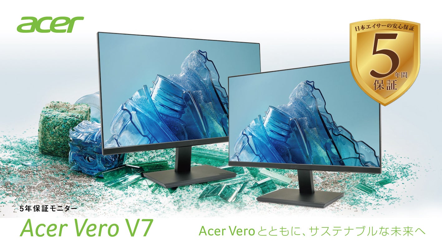 通常3年保証を5年に延長!再生プラスチックを使用したサステナブルなAcer Veroシリーズから、法人市場向けモニター3モデルが登場!