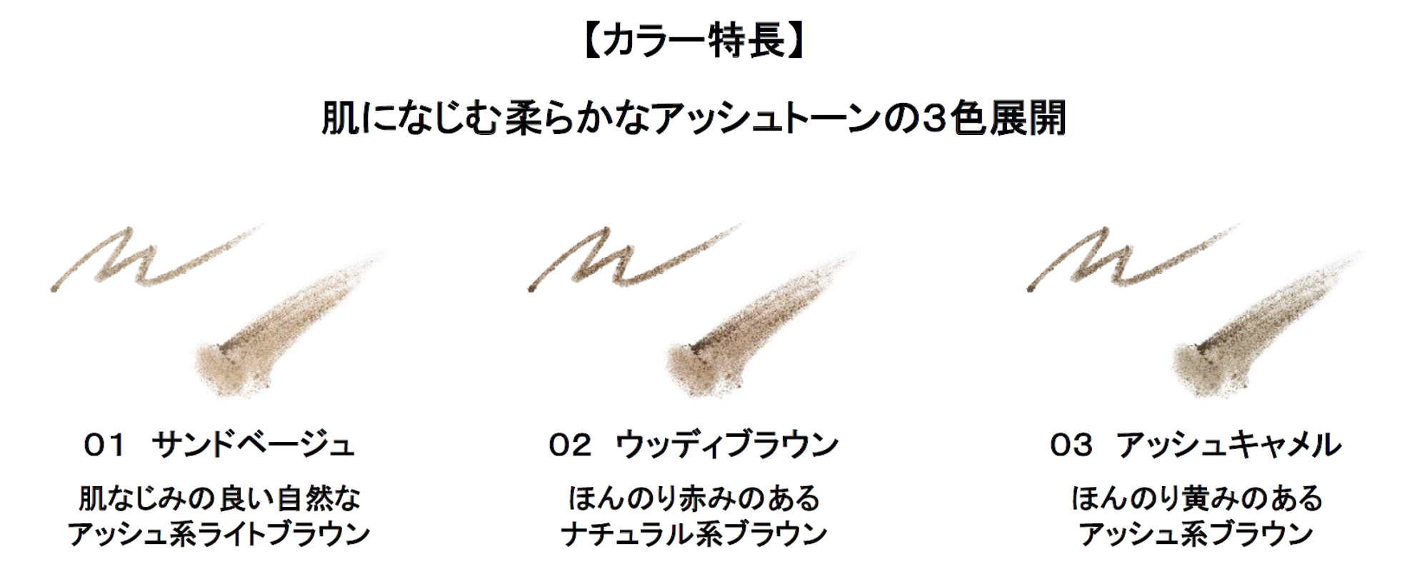 全3色 ペンシル0.1g/パウダー0.3g 各¥1,300(税込¥1,430)