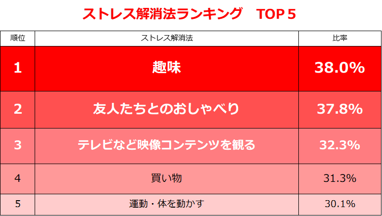 5.ストレスの原因・ストレス解消法ランキング TOP5