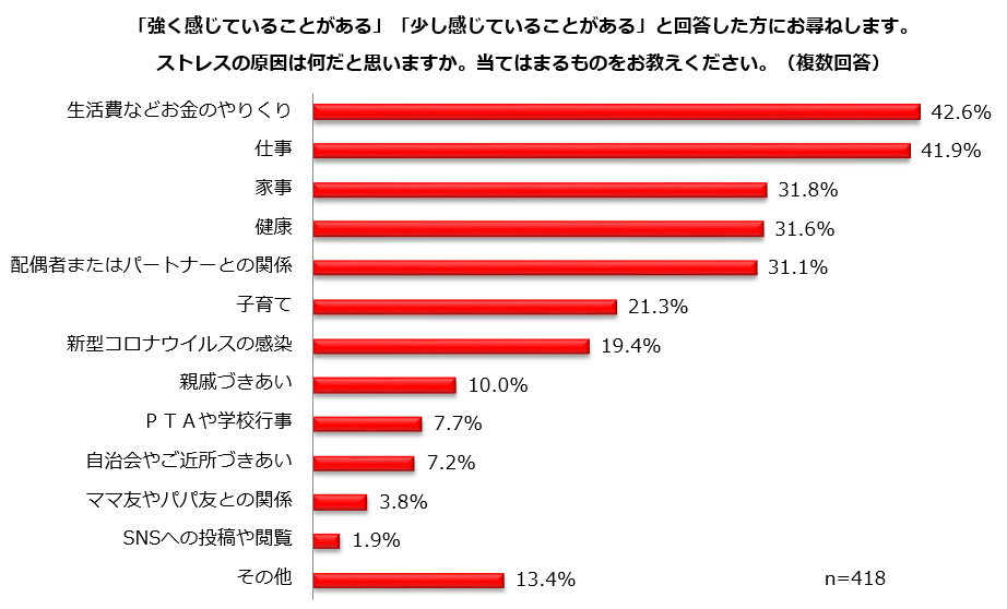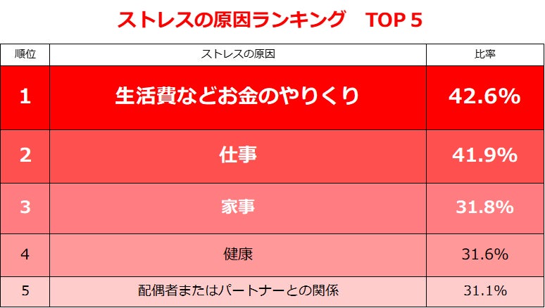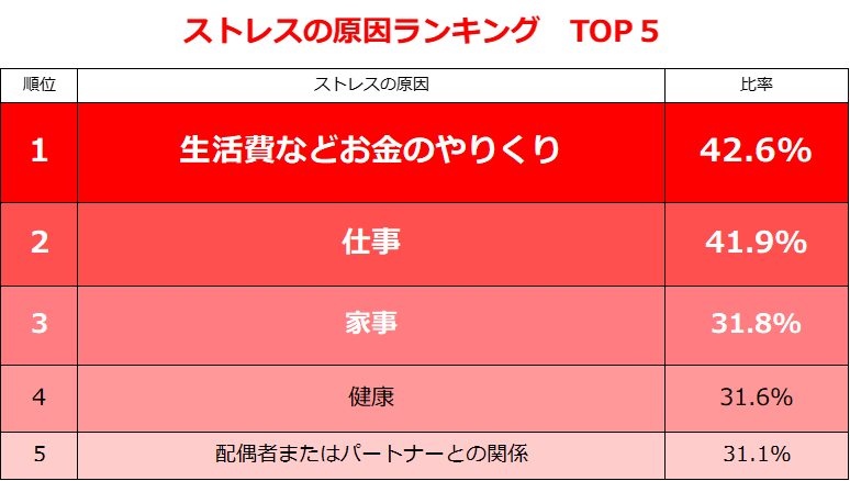 3.ストレスの原因:1位「生活費などお金のやりくり」42.6%