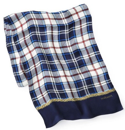 シルクシフォンにハウスタータン柄をプリントした、エレガンスな一枚。さりげない透け感が上品さをプラス。レディライクな装いに、首元に巻いて楽しむのはもちろん、サッシュベルトやバッグチャームとしてスタイリングするのも素敵です。