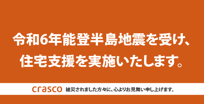 クラスコでは地元企業として、被災された皆さまが少しでも安全そして快適に、今後の生活を送れるよう、また、1日も早い復興を実現できるよう、『クラスコの管理する賃貸住宅を契約したお客様の「仲介手数料無料」』及び『契約開始から最大で6ヶ月間の家賃を無料とする「住宅支援の提供」』での支援を被災された方を対象に行うことを決定いたしました。今後もクラスコでは、被災支援のニーズに応じたサポートを中長期的に実施していく予定です。