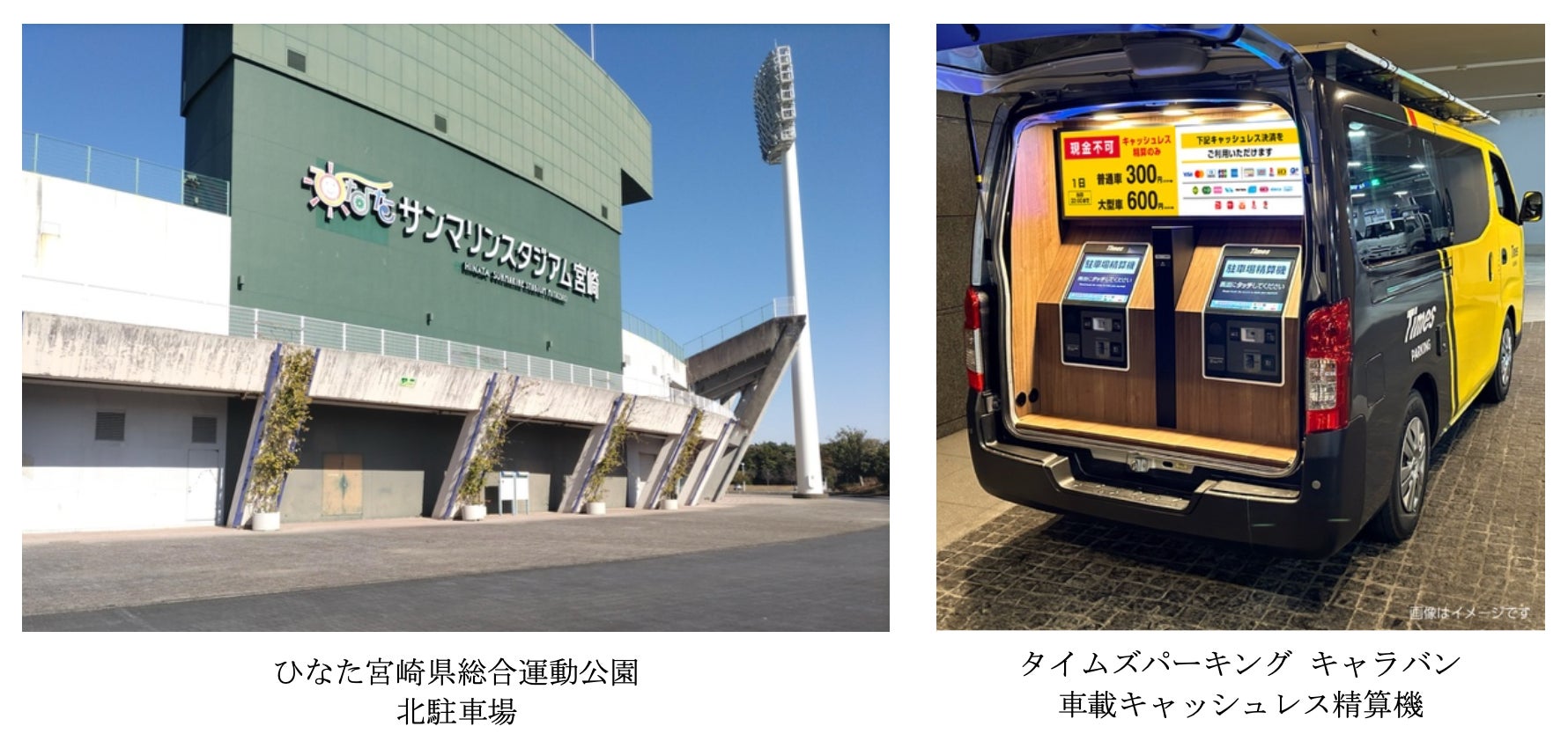 公益財団法人宮崎県スポーツ施設協会とタイムズ24株式会社(本社:東京都品川区、社長 西川 光一、以下「タイムズ24」)は、ひなた宮崎県総合運動公園において、移動式駐車場管理サービス「タイムズパーキング キャラバン」を活用した事前精算型駐車場運用の実証(以下、本実証)を実施します。