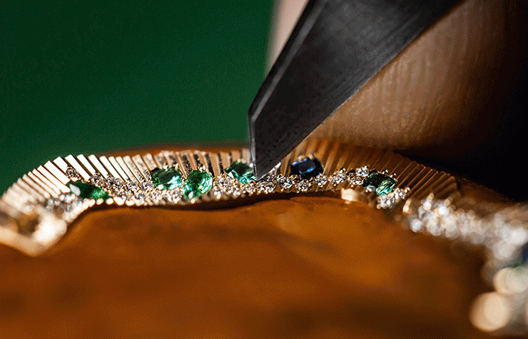 36mm 自動巻き、ホワイトゴールド、イエローゴールド、ダイヤモンド、サファイア、グリーンサファイア、トルマリン、ガーネット
