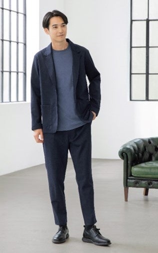 AOKIでは2020年11月にパジャマスーツ®を発売し、大変お客様にご好評いただいております。今回新たに展開する『パジャマスーツ®リラックス』は、ONでもOFFでも着用できるアイテムの需要の高さと、トレンドのややオーバーなサイズ感を受け、今までのパジャマスーツ®よりもリラックス感が高いことが特長です。通常のジャケットは後ろ身頃を2枚の布を縫い合わせ、背中に吸いつくような立体感と、ウエストシェイプによるフィット感を演出しますが、本商品は1枚布で仕立てております。1枚布により、生地本来のストレッチ性が損なわれることなく着用でき、ウエストシェイプを無くしトレンド感のあるややオーバーなシルエットを演出することで、プライベートでも着用しやすい1着です。肩回りやテーラード部分は、AOKIが今まで培ってきた立体縫製技術により、きちんと感がありビジネスシーンでも安心してお召しいただけます。