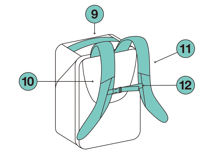 ⑫ ずり落ちを防ぐ、チェストベルト