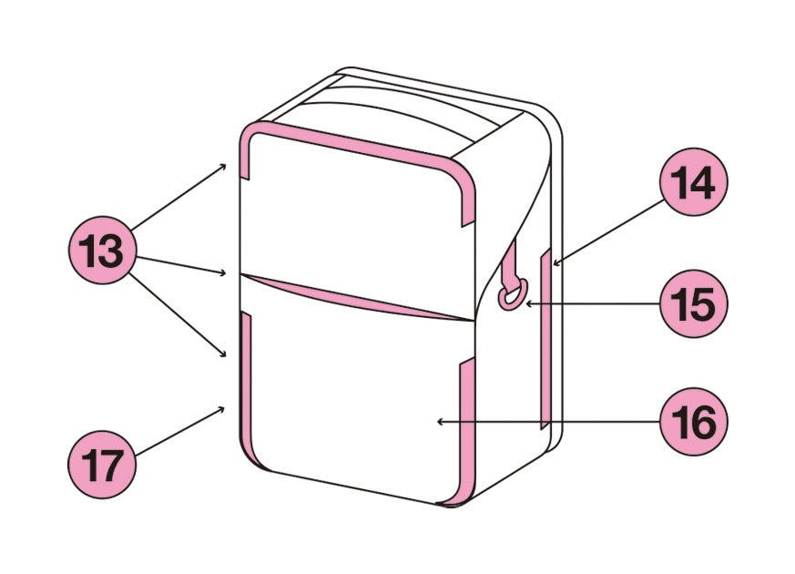 ⑮ 防犯ブザー等を付けられる、ぶら下げリング