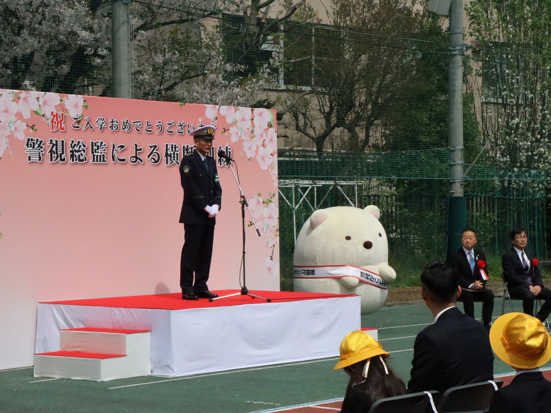 続いて、警視総監・筒井洋樹氏、大田区長・鈴木晶雅氏らが登壇。子供たちへの安全な登下校を呼びかけるなどの挨拶が行われました。