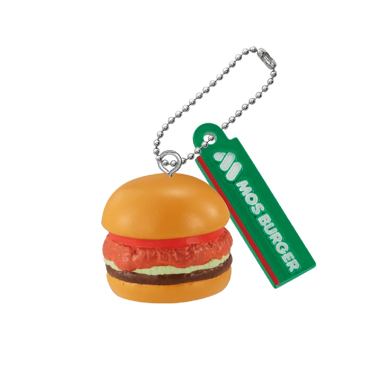 モスバーガーの大人気メニューがリアルなミニチュアチャームになって新登場!ロゴプレートも付いたダブルスイング仕様です。