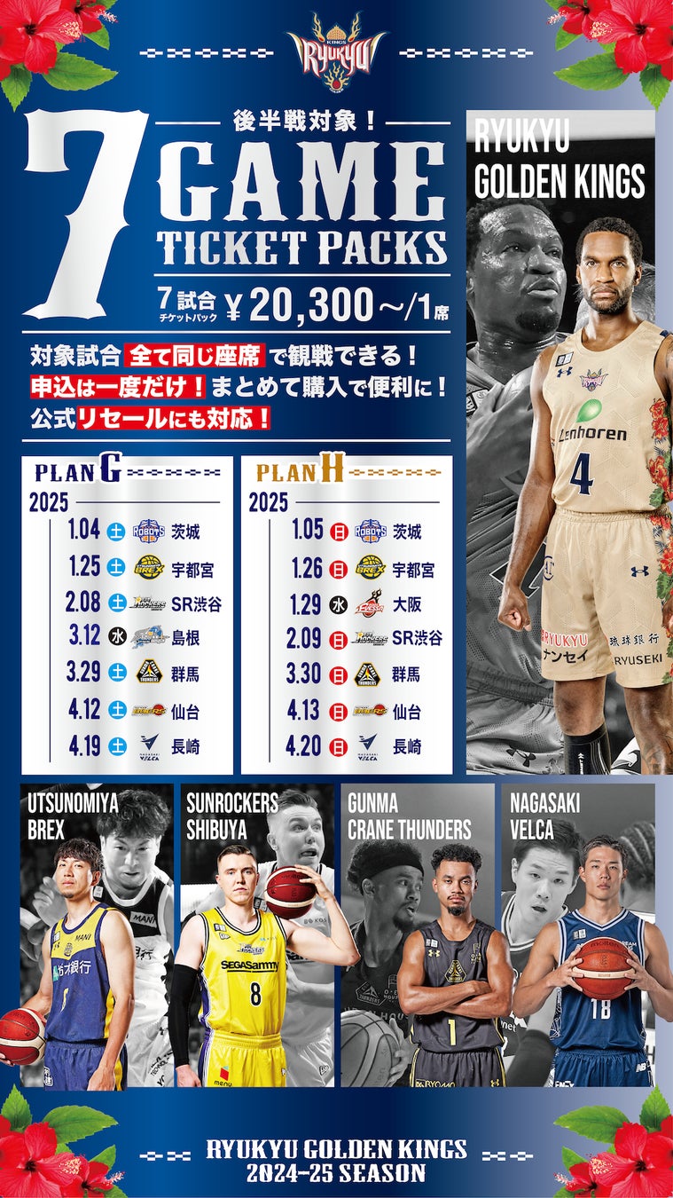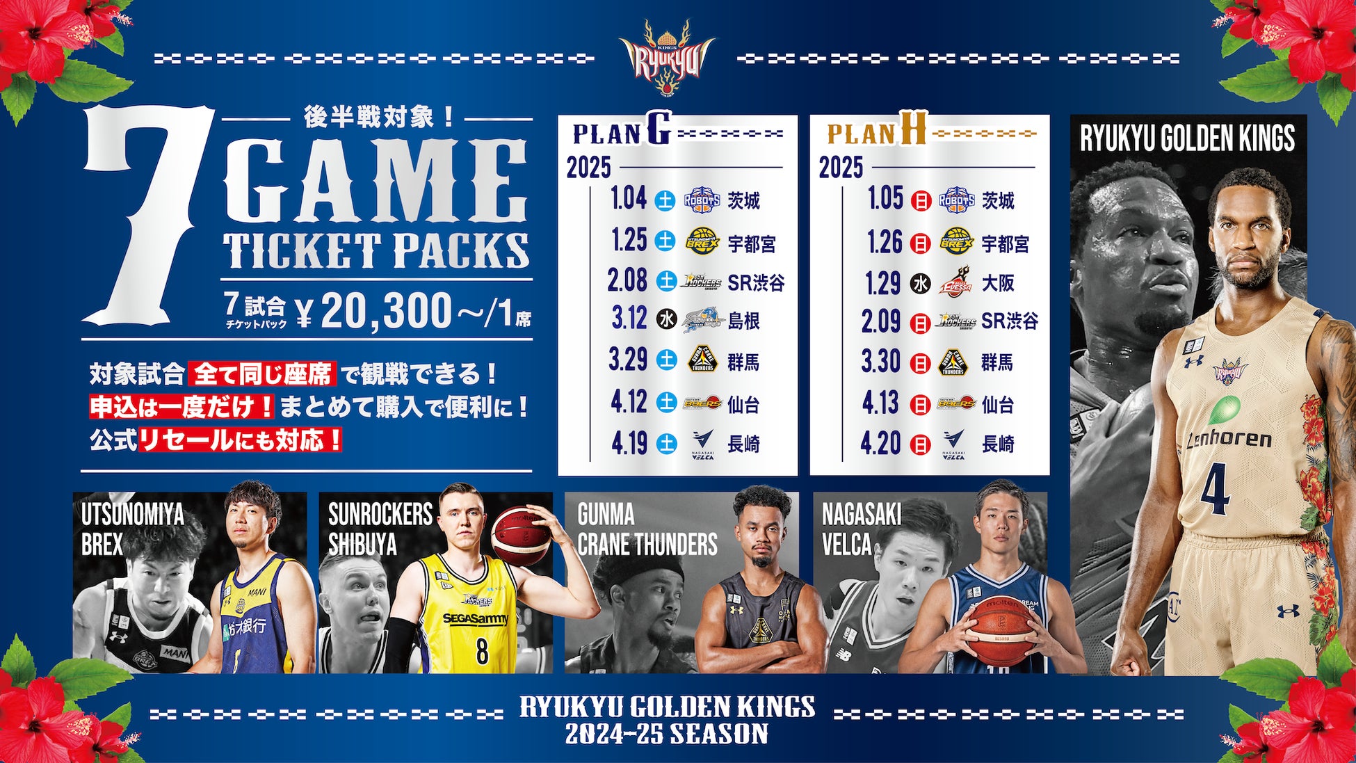 1月以降のキングスホームゲームの注目カードが詰まった、7試合パックのチケットです。日本代表としてもプレーする、比江島選手(宇都宮)やホーキンソン選手(SR渋谷)、馬場選手(長崎)との対戦など、見逃せない試合が目白押しです!