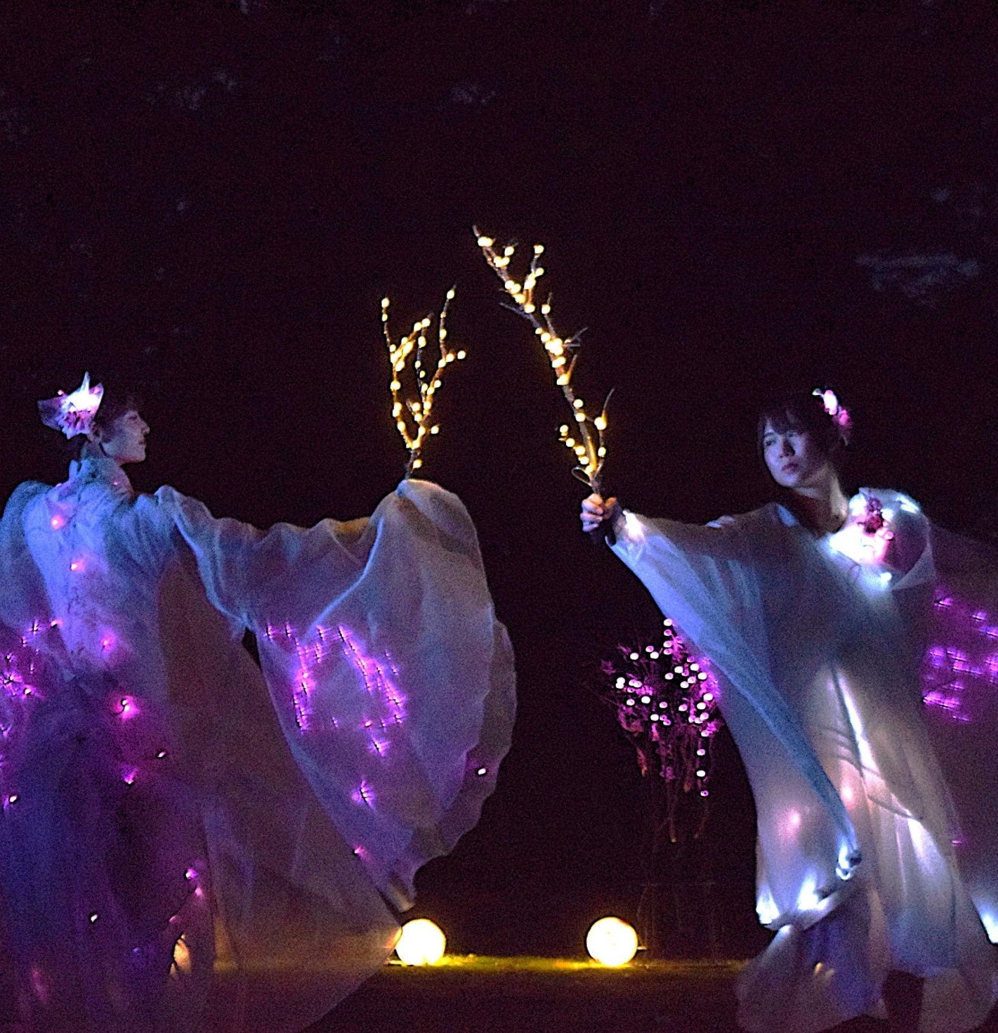 玉川大学の学生によるライトアップイベントです。光をまとった桜の精が舞い踊ります。