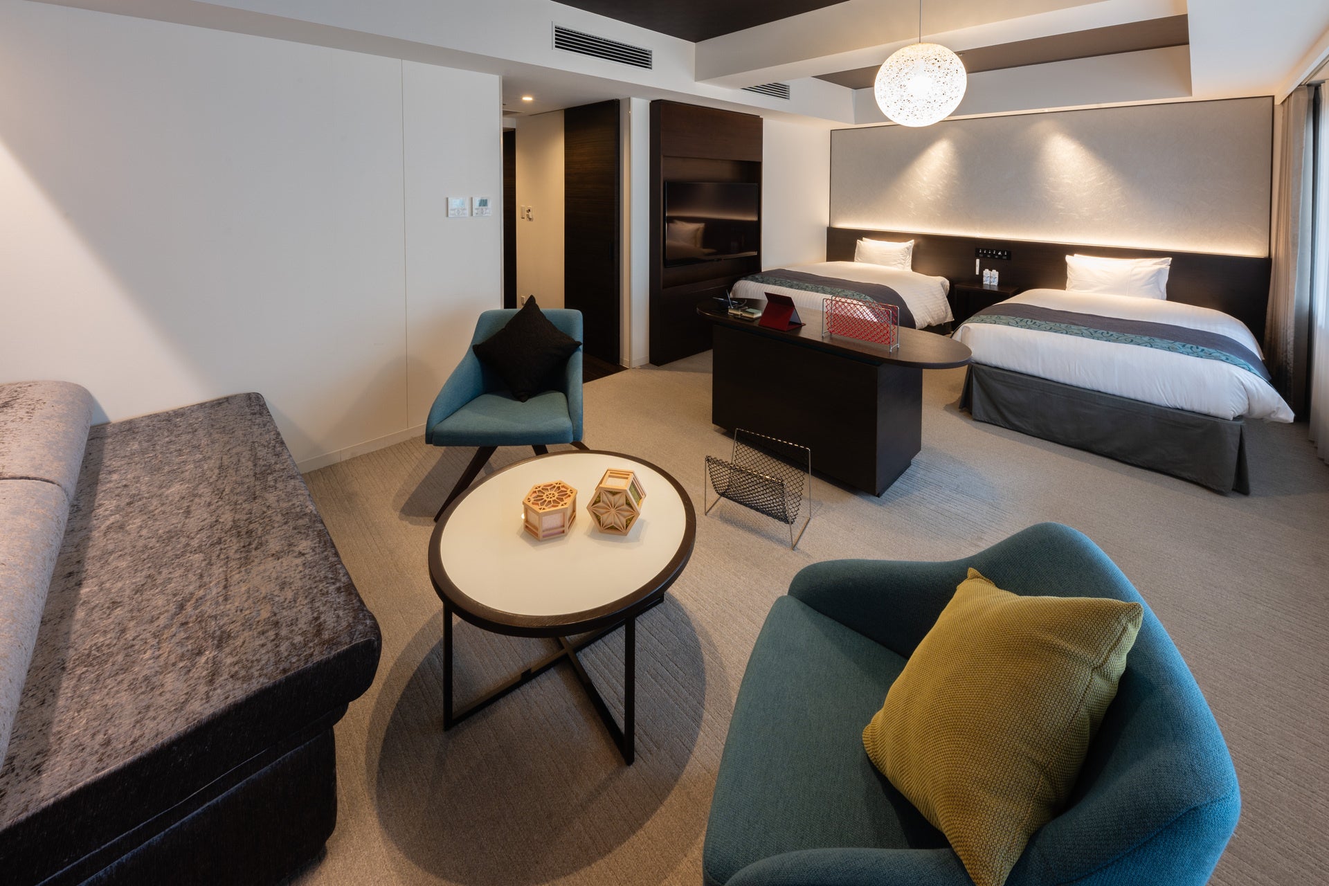大阪には“食文化”だけではなく、優れた“ものづくり技術”をもつ企業が多くあります。その高い技術力でつくられた製品の魅力を広く知っていただきたいという思いから、本プランでは大阪製ブランド認定制度(※)に基づき大阪府知事が認定した「大阪製ブランド製品」4種類を、リビングとベットスペースを持つ最も広い客室「ヴィスキオツイン」にご用意いたします。伝統技術とLEDを融合させた⽊製のインテリア照明『光箱®』や、1枚1枚使っていくことで大阪城が現れるブロックメモ『OMOSHIROI BLOCK』、日本人の肌の色をよりナチュラルに美しく再現することができる特許技術を活用した『ナピュアミラー プロモデル折立ミラー』、高い技術と特別な設備が必要な目の細かい金網でできた『amiMono(アミモノ)ラック』など、大阪製ブランド製品の魅力を、実際に使用することで体感していただけます。